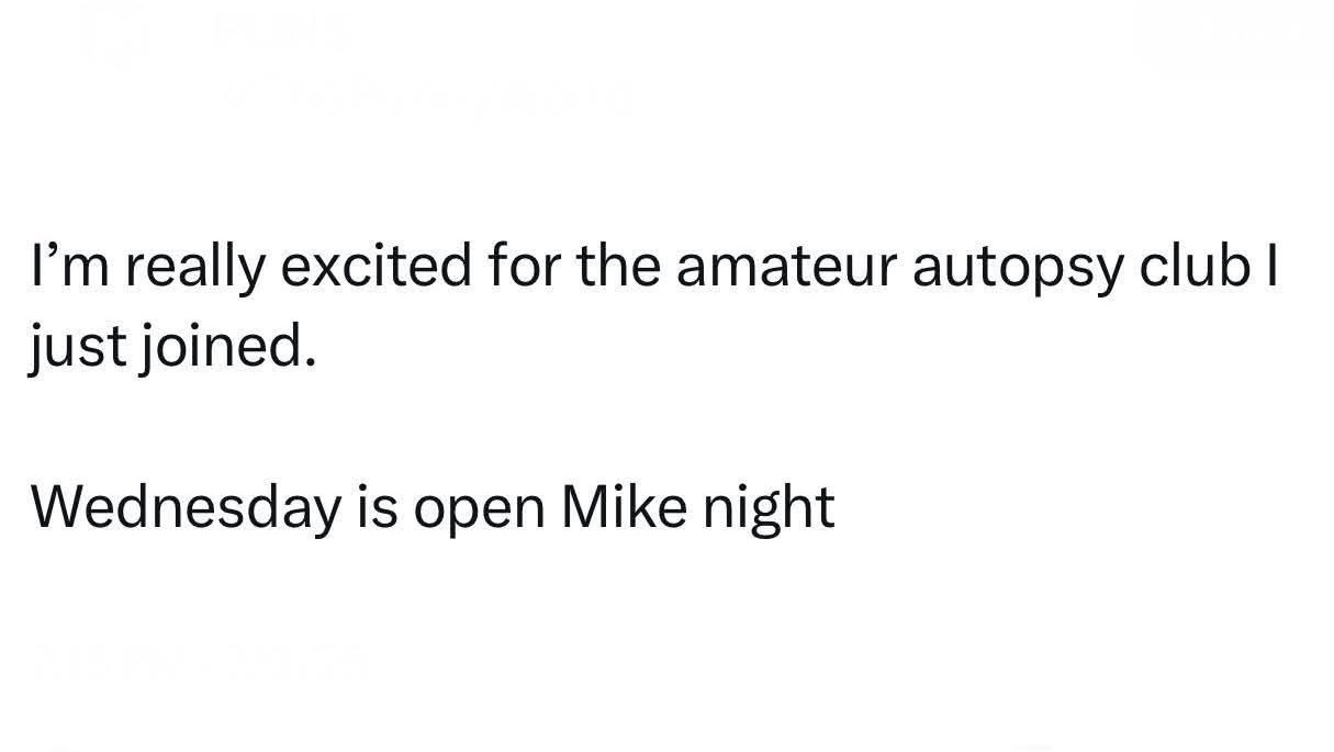 arrow-up1277arrow-down1imageI'm Really Excited For The Amateur Autopsy Club I Just Joined...plus-squareslothrop@lemmy.caEnglish · 2 days agomessage-square5linkfedilink