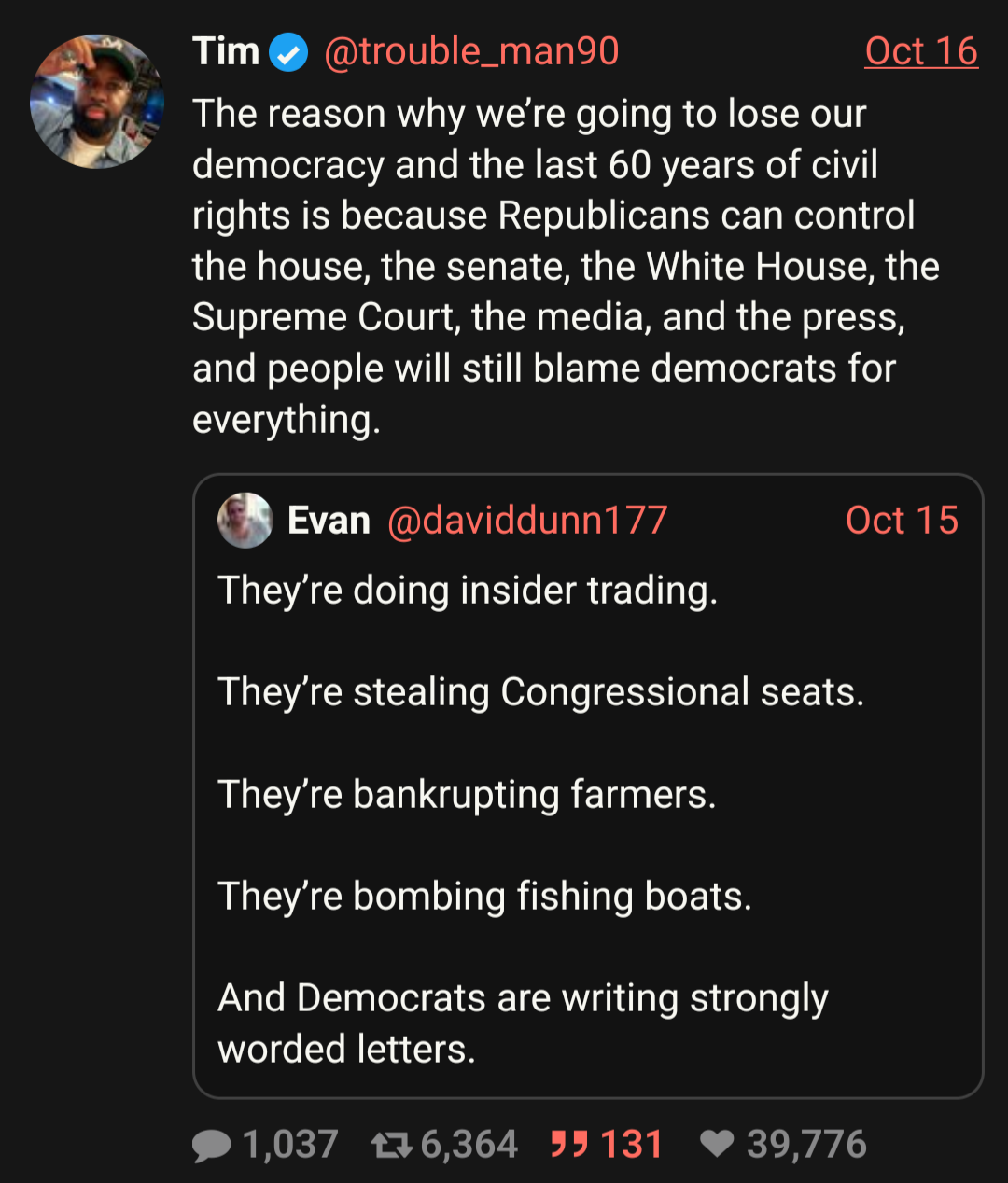 arrow-up1610arrow-down1imageCivil rights is cookedlockByteOnBikes@discuss.online to People Twitter@sh.itjust.works · 2 months agomessage-square99linkfedilinkfile-text
