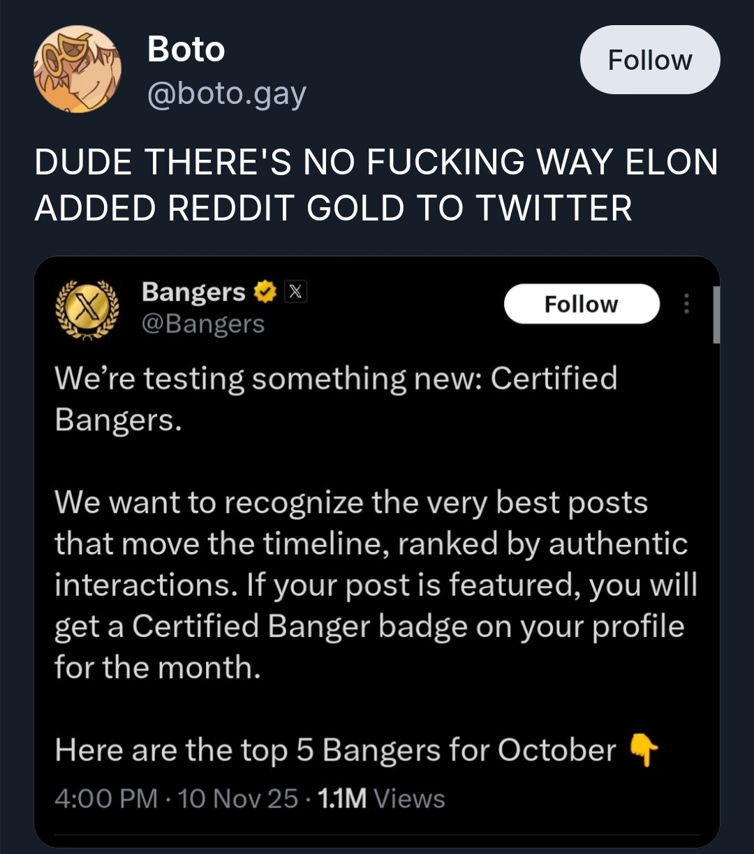 arrow-up1315arrow-down1imageXitter gold ruleZILtoid1991@lemmy.world to 196@lemmy.blahaj.zoneEnglish · 2 days agomessage-square28linkfedilink