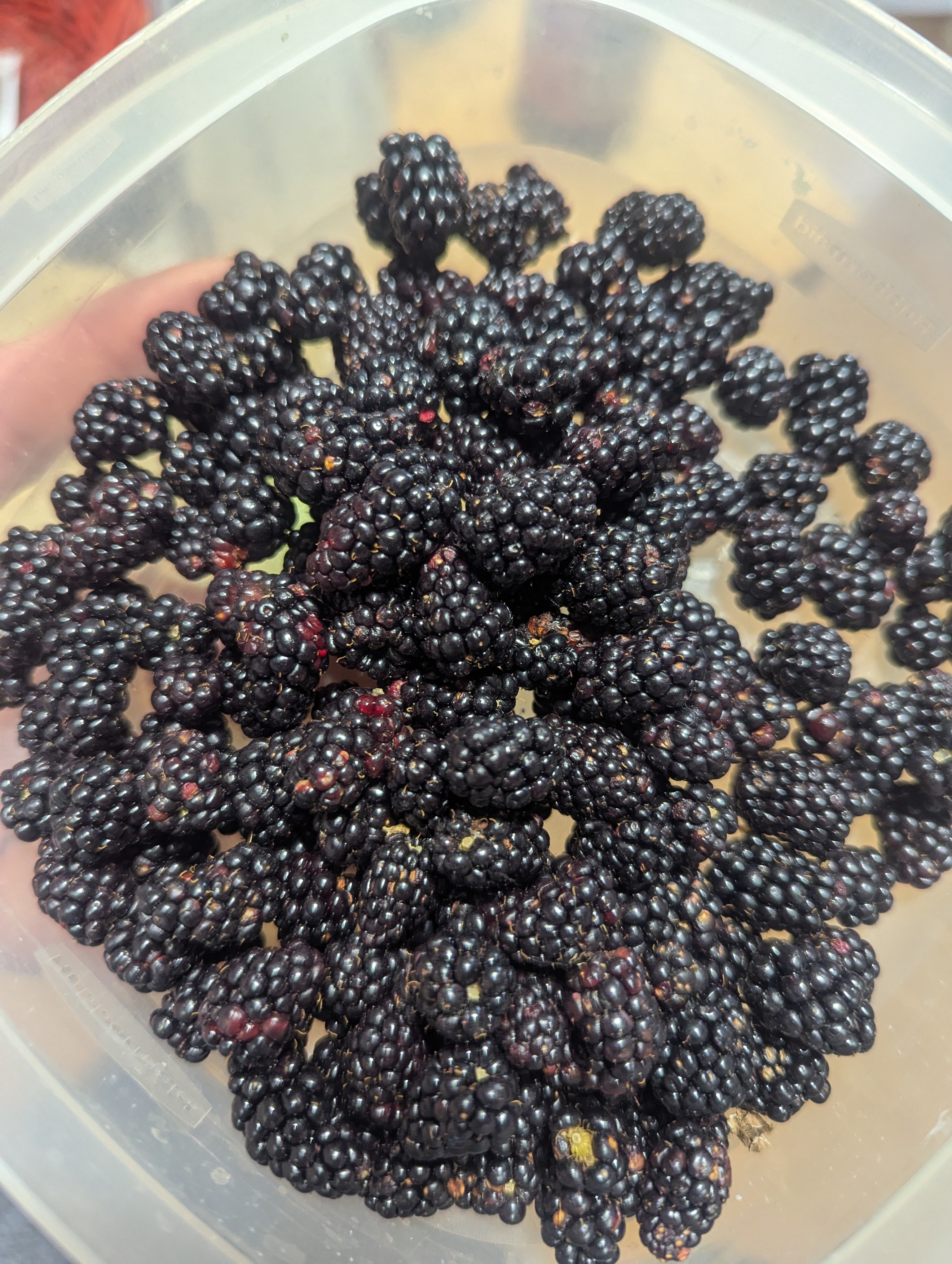 Blackberries are coming into season. These are volunteers so they are a touch on the astringent side, not great for raw eating. Sugar helps cut that so last year I made a lot of blackberry jam. I probably have enough to get through this year so I’m looking for alternative ideas for long term storage. If not I’ll make more jam.