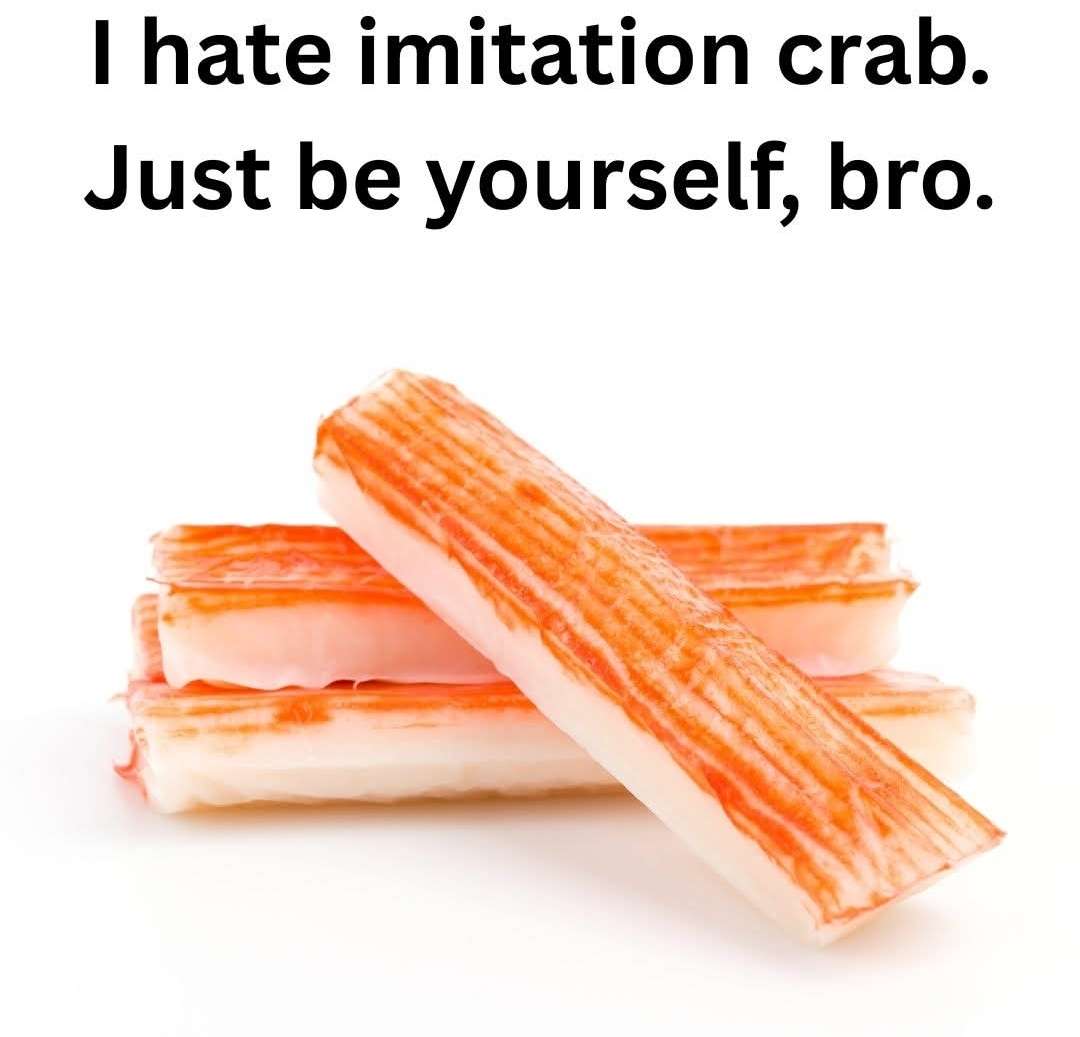 Imitation crab tastes great, and isn’t really all that similar to crab. It’s a fish product good enough to stand up for itself, does not need to hide