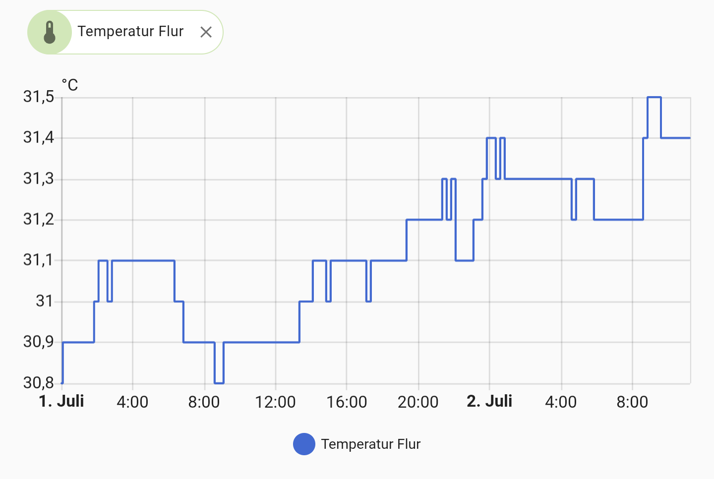 The sensor is located on the case (not near the exhaust) of the server. With the structure of my appartment this is the only place I can realistically put my Server but sadly also the hottest place in my appartment.