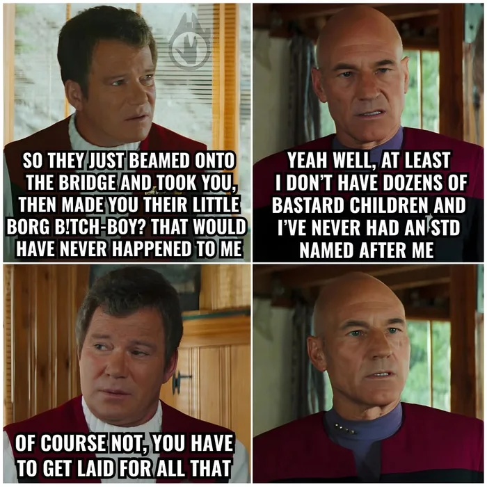 NegativeNull@lemmy.worldM to TenForward: Where Every Vulcan Knows Your Name@lemmy.worldEnglish · 5 months agoBattle of the Cap'nsimagemessage-square26linkfedilinkarrow-up1244arrow-down112