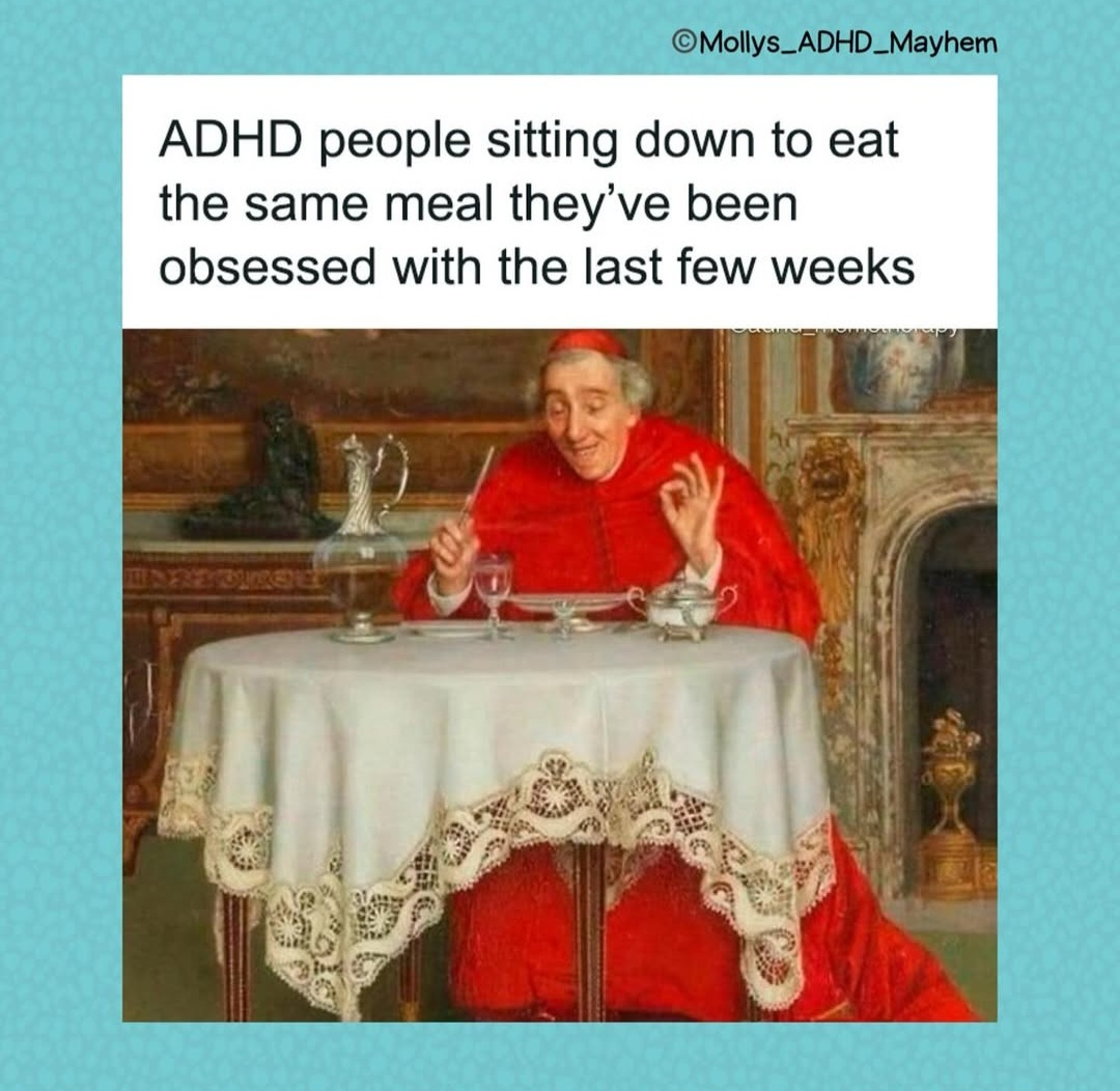 Did not know this was an ADHD symptom… My wife’s been complaining about eating rice and pork for lunch for about a year now and I was…why? It’s delicious! I’ve been diagnosed with ADHD recently so…makes sense.