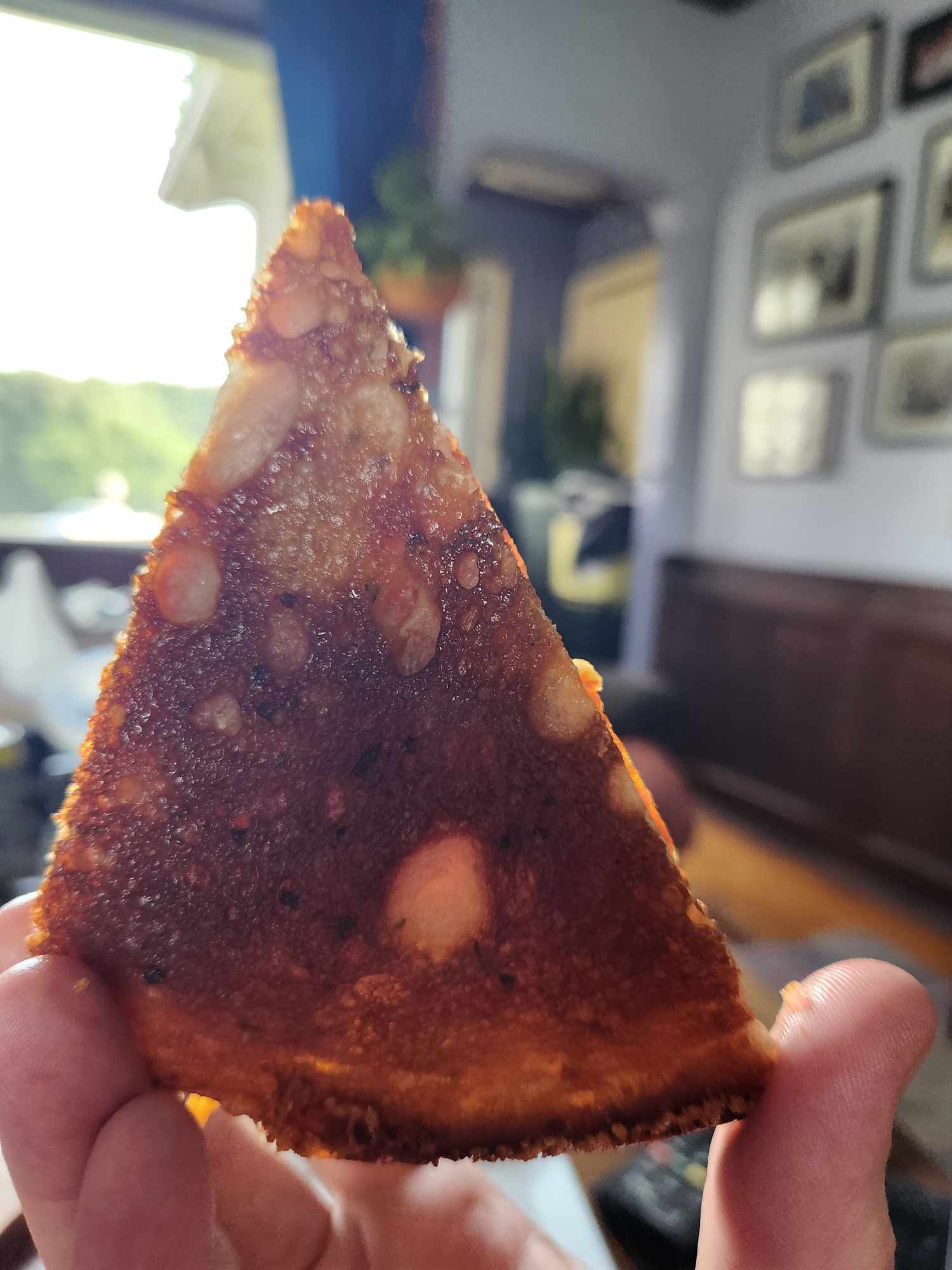 Cast iron pizza is the shit, the only other pizza that comes close is a well made Sicilian. I like to stuff a bit of shredded cheddar between the edge of the dough and the side of the pan right before baking; makes it slightly more work to get the pizza out when it’s done but it makes a perfect cheese crisp on the crust