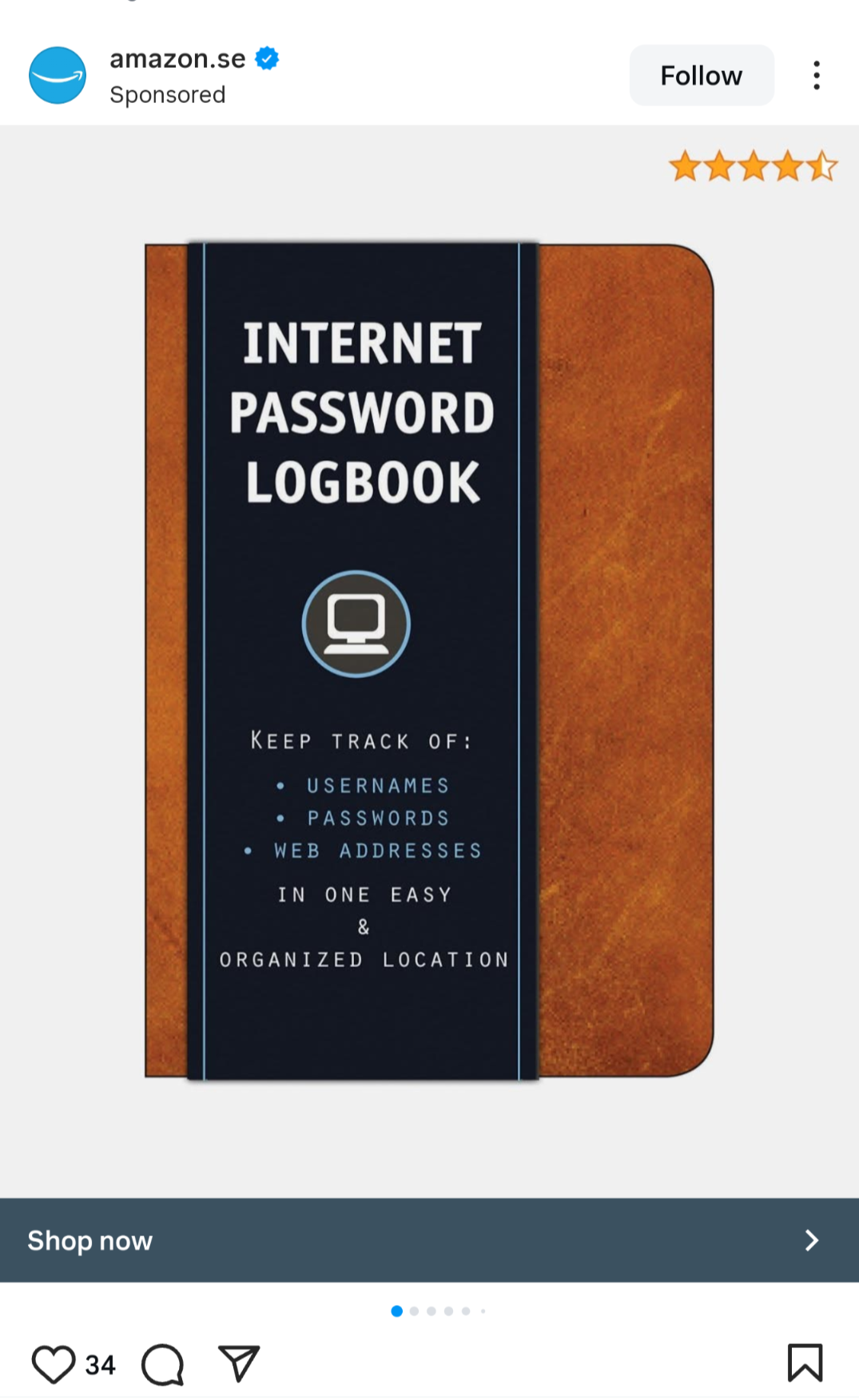 So… It’s a password book? Like, pen and paper?Not the best choice for storing passwords, but I’d be more willing to do that than trusting Amazon not to hold my passwords hostage with a digital service by them.