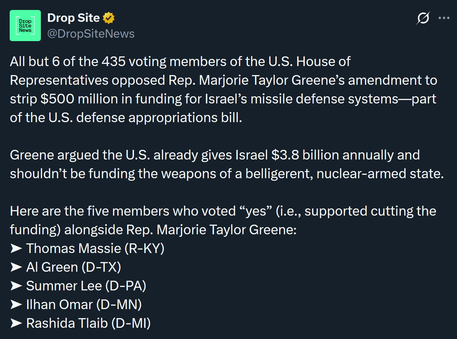 geneva_convenience@lemmy.ml to Progressive Politics@lemmy.world · 5 months agoAOC voted against MTG’s amendment to strip Israel funding from the Defense Appropriations Act of 2026imagemessage-square11linkfedilinkarrow-up125arrow-down120cross-posted to: usa@lemmy.ml