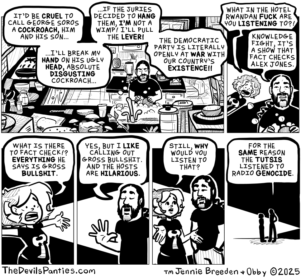 Adding to that: yes those moments are very enjoyable, but if you listen for longer you’ll notice they are around a lot and the replies of dan and Jordan are in a vacuum, they have no impact on what is being rambled about. In those depositions there is actually a professional in the room, that either stops the rambling (there is a moment where one lawyer actually does a “bapbapbap I’m talking, not you” to Alex Jones), or they just deflate all the nonsense with a short remark like “in what way was this an answer to my question” or " do you know what question you are answering right now?". Oh and one of my favorites “that’s a nice opinion to have, but not an answer to my question”.