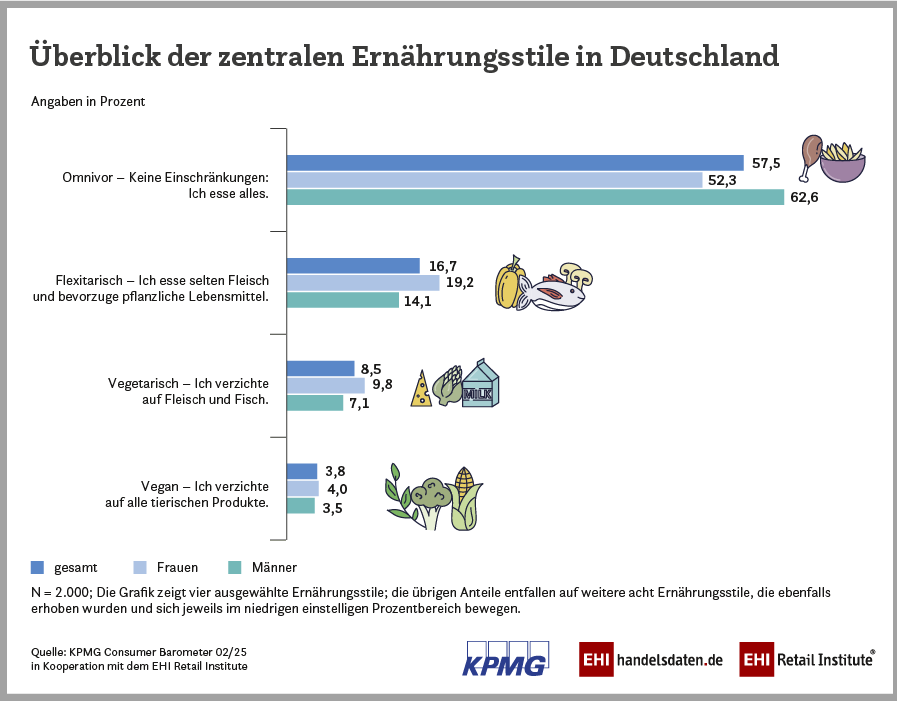 die übrigen Anteile entfallen auf weitere acht Ernährungsstile, die ebenfalls erhoben wurden und sich jeweils im niedrigen einstelligen Prozentbereich bewegen.