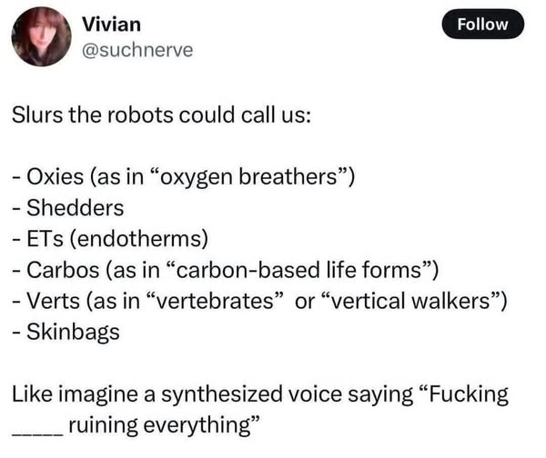 fossilesque@mander.xyzM to Science Memes@mander.xyzEnglish · 5 months agorobot slursimagemessage-square156linkfedilinkarrow-up11.02Karrow-down117