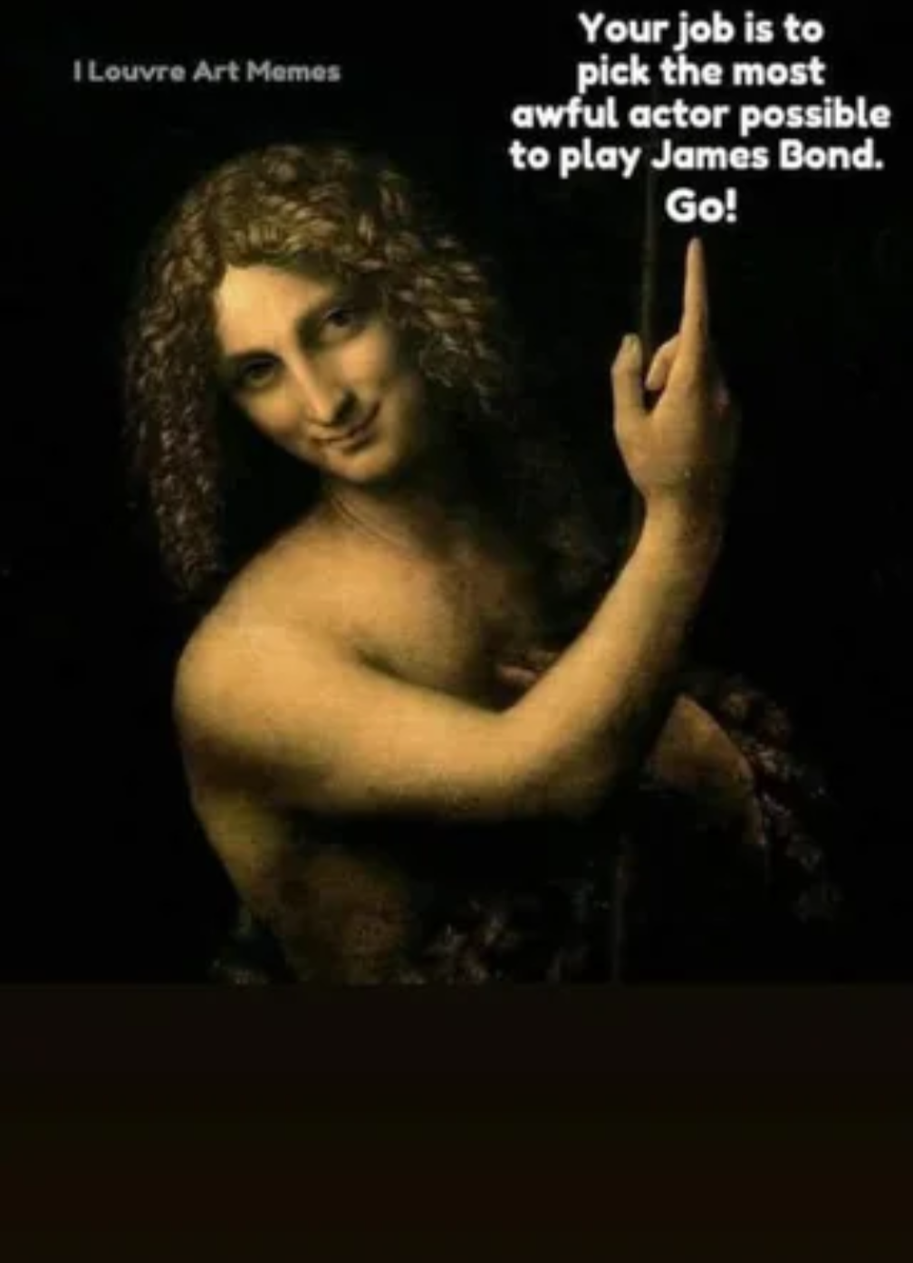 minus-squareRemember_the_tooth@lemmy.worldlinkfedilinkarrow-up1·4 months agoSacha Baron Cohen. If he played Borat playing Bond, yes, that would be hilariously bad.