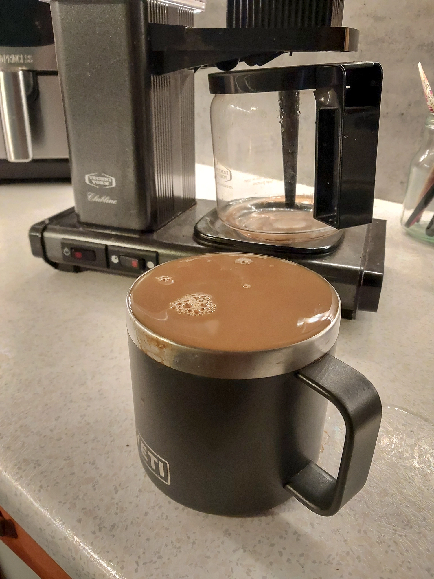 When I make coffee just for myself, I always measure out the same amount of water and this never happens. But my SO is slightly less autistic about it than I am and makes inconsistent amounts when brewing for the two of us - and I just can’t stand the thought of pouring even a drop of coffee down the drain. So, I spill it on the table and floor instead.