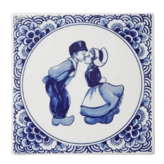 This is an iconic Dutch “delft blue” ceramic tile, get over yourself, two kids kissing is part of life.