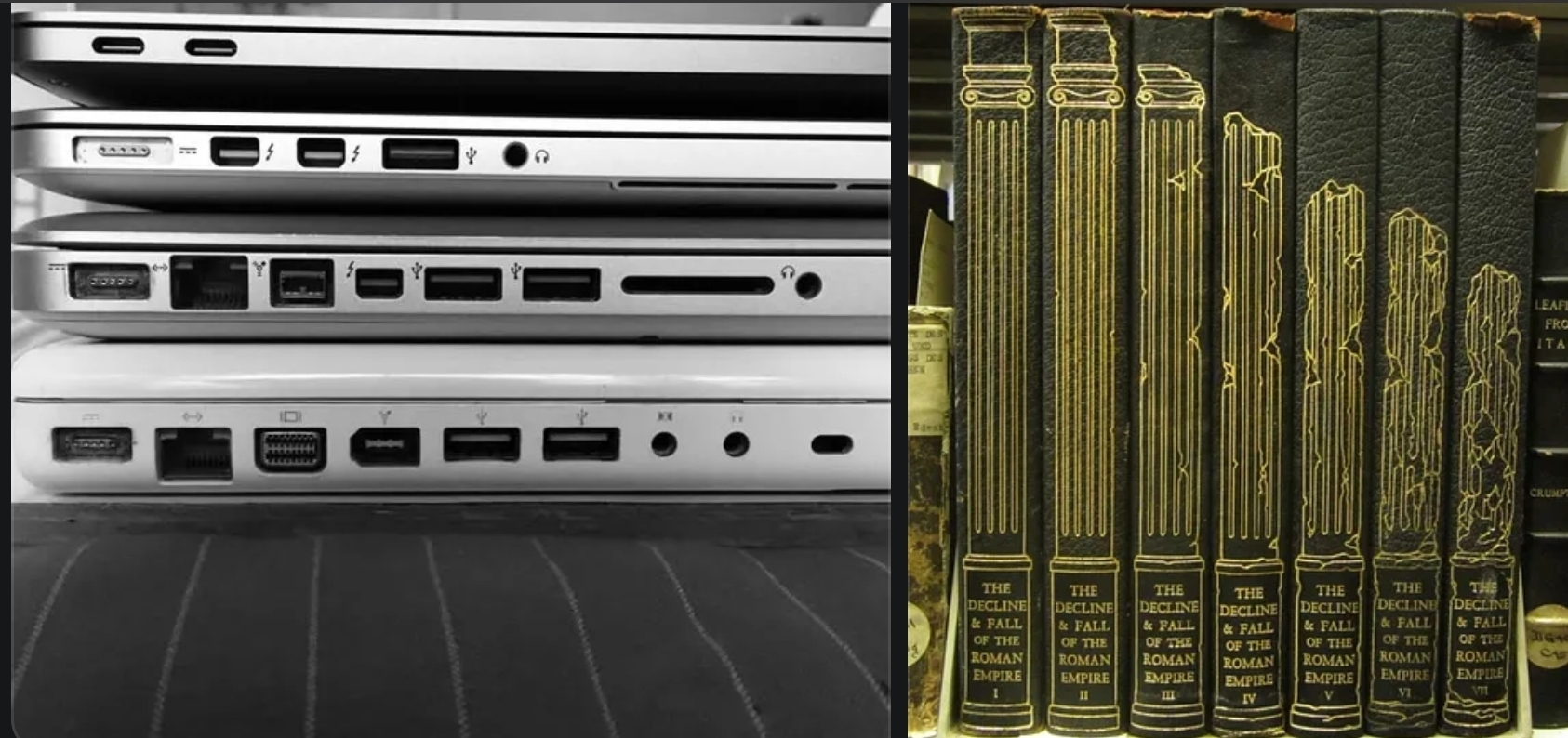 I swear the people who decide what ports go onto laptops have never used a laptop in their life. I know now manufacturers would love to just sell you a dongle add-on or two that plugs into your USB-C port and has all of the other useful ports on it you actually need, but even before then… who needed only 1 USB-A and two lightning cable ports? When was Mini-DVI relevant?
