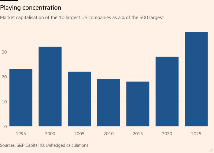 Pulling out a specific point, the articleās noted how market concentration is higher now than it was in the dot-com bubble back in 2000: