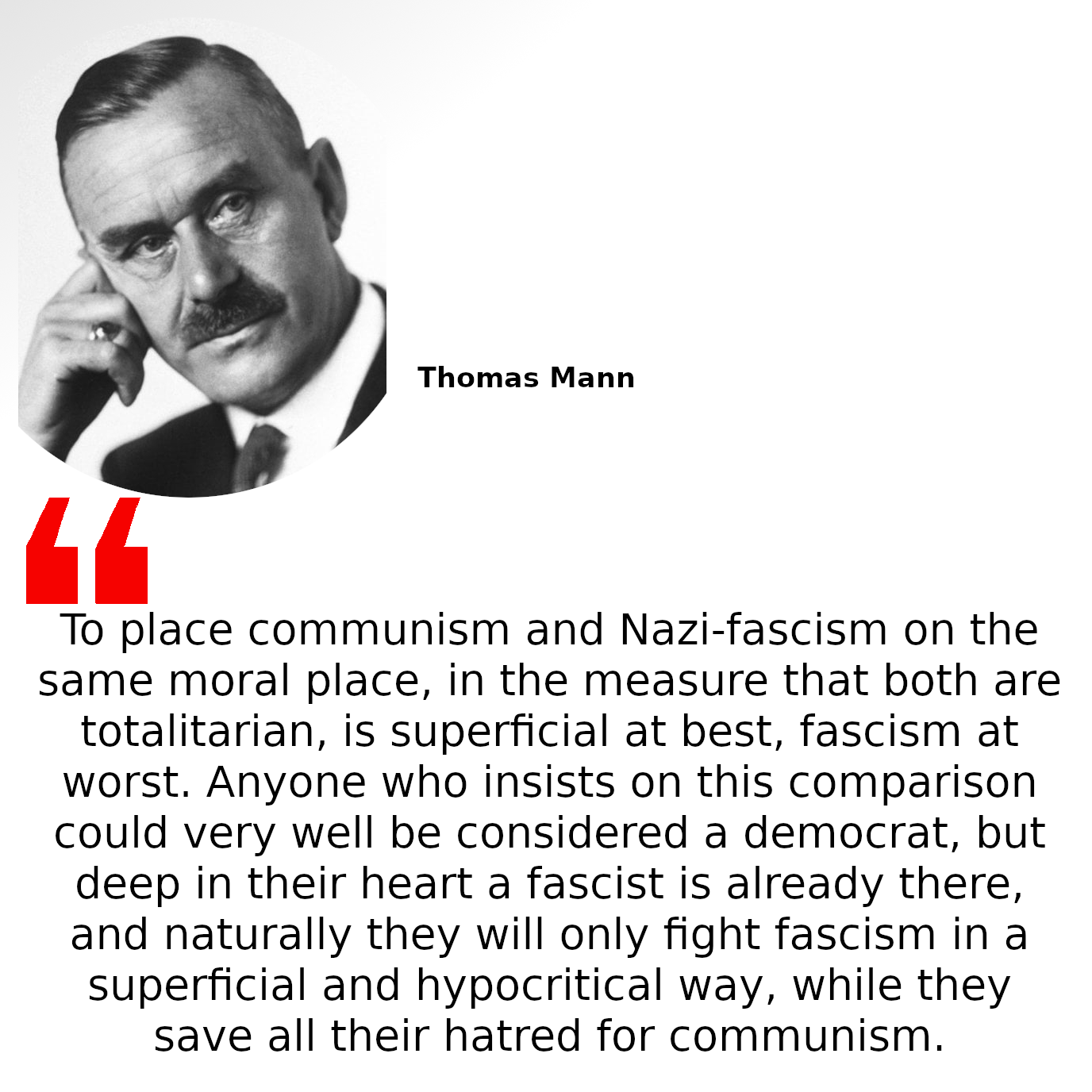 Transcript: To place communism and Nazi-fascism on the same moral place, in the measure that both are totalitarian, is superficial at best, fascism at worst. Anyone who insists on this comparison could very well be considered a democrat, but deep in their heart a fascist is already there, and naturally they will only fight fascism in a superficial and hypocritical way, while they save all their hatred for communism.