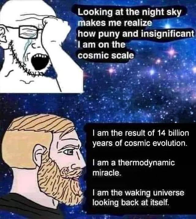 I can do both of these flipping back and forth. Existential dread, awe, and purpose at the same time.