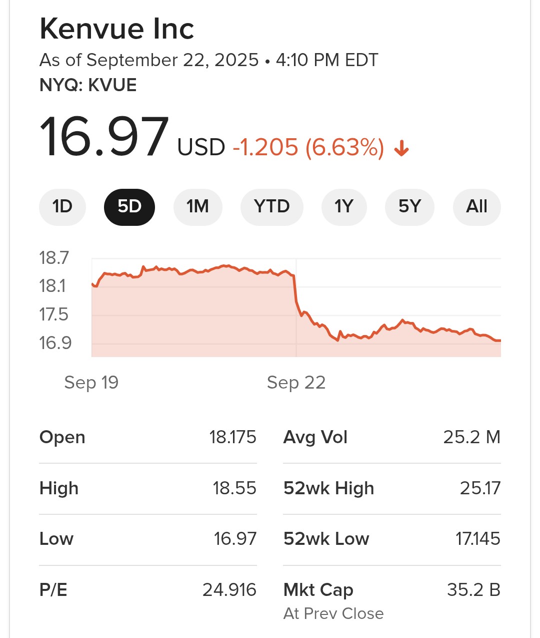 Have to be honest, never heard of Kenvue before today, always thought Tylenol was Johnson & Johnson or one of the other giant companies.