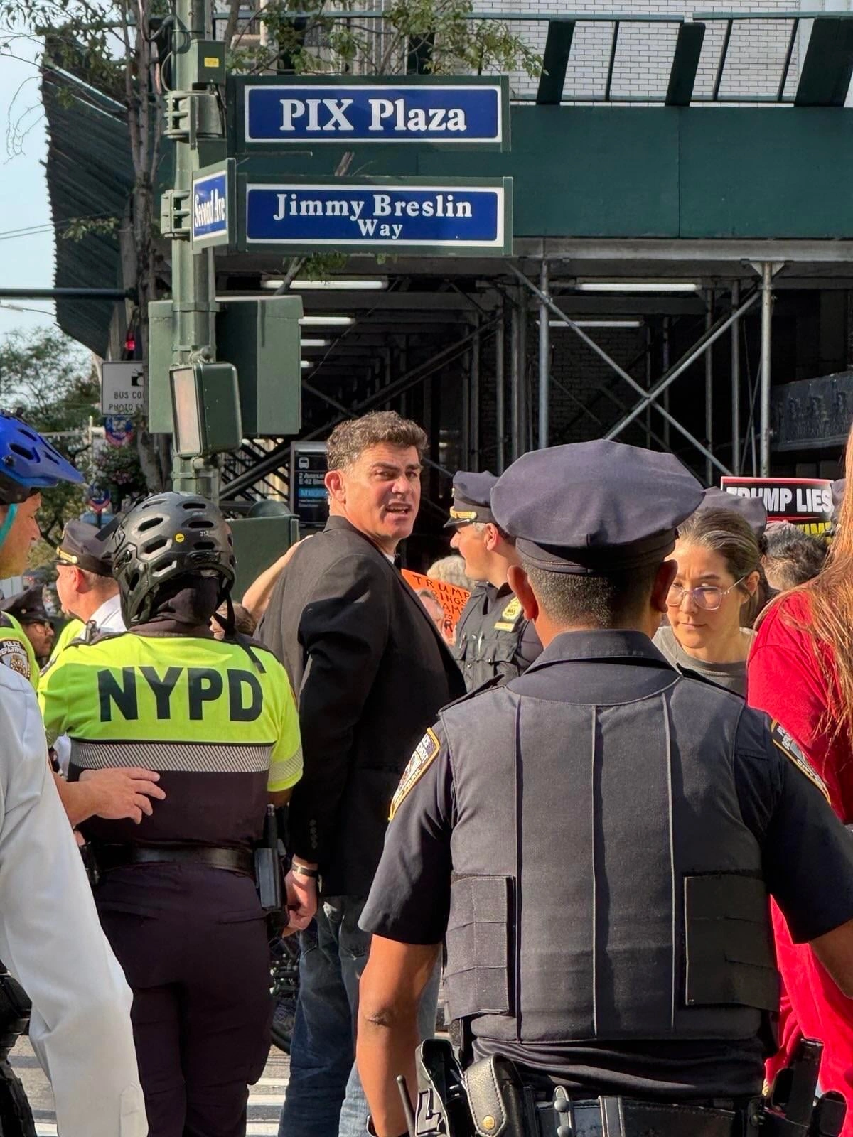 A coalition of orgs, in addition to 50501 NY, formed a blockade in the middle of Jimmy Breslin Way to gain attention from the international community and the media during the UN general assembly today.