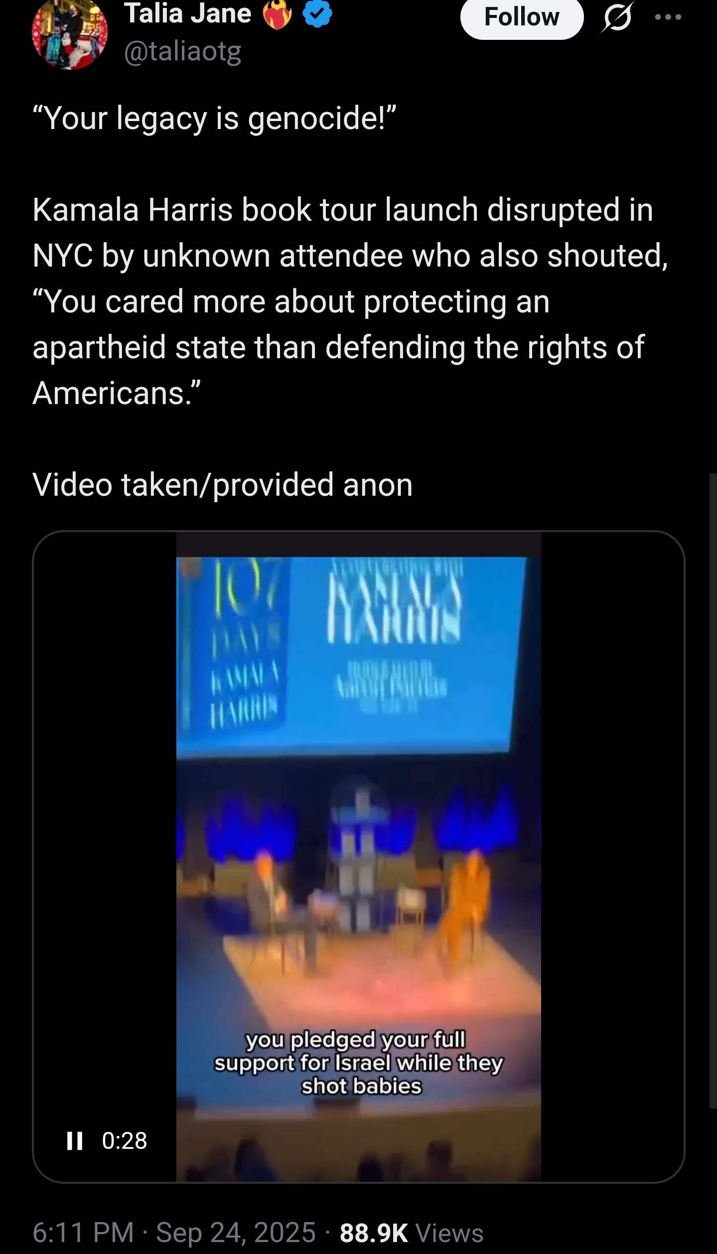 Read this again. Pay attention to how weak of an argument it is. There was a chance she would eventually cave? Come on, no one really believes that, especially when she gave no indication that she believed anything different than Trump or Biden about Israel’s genocide of Palestinians. You just got an “I can change her” vibe from her with no evidence.