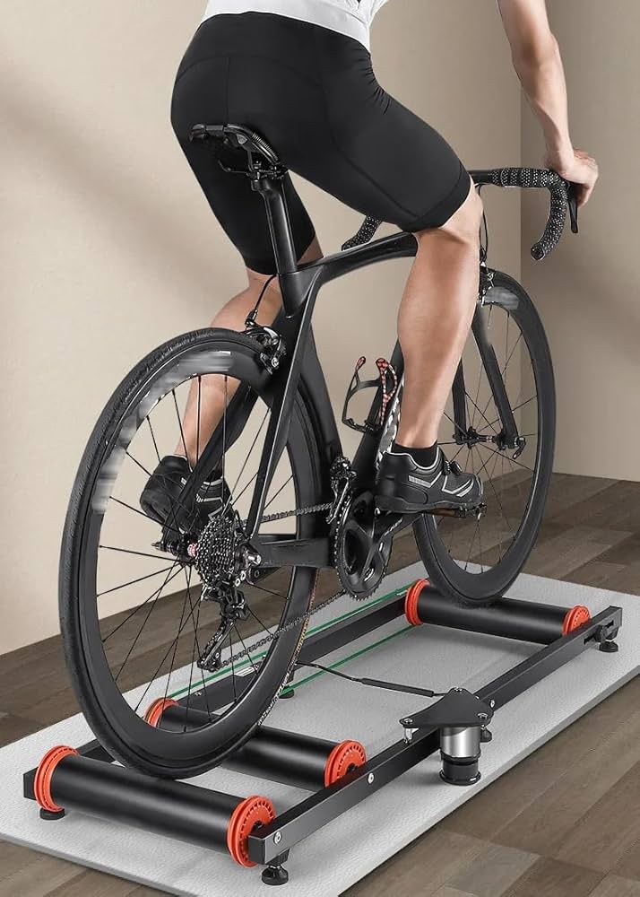 They make real “bike treadmills” called rollers. It’s not all that crazy.