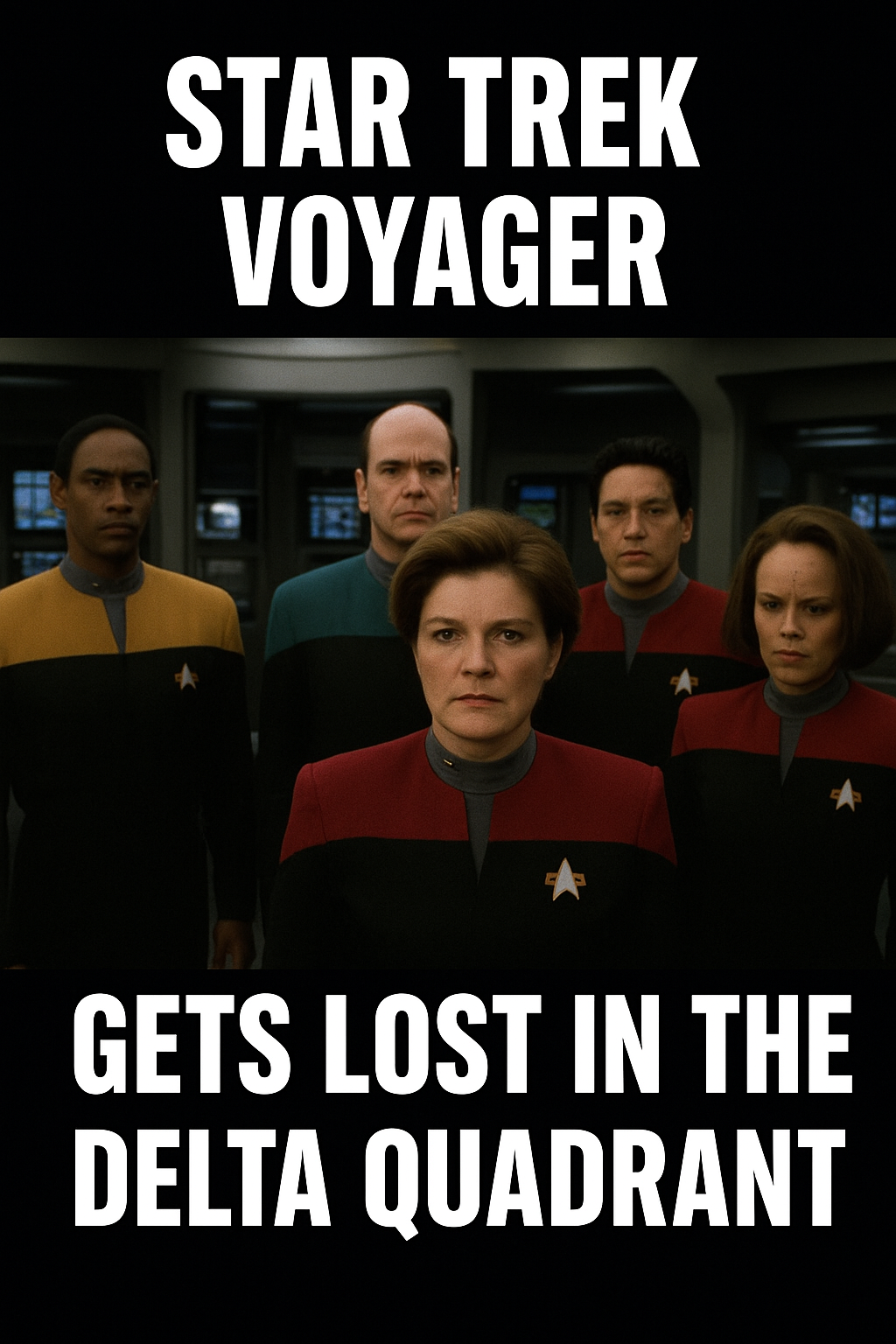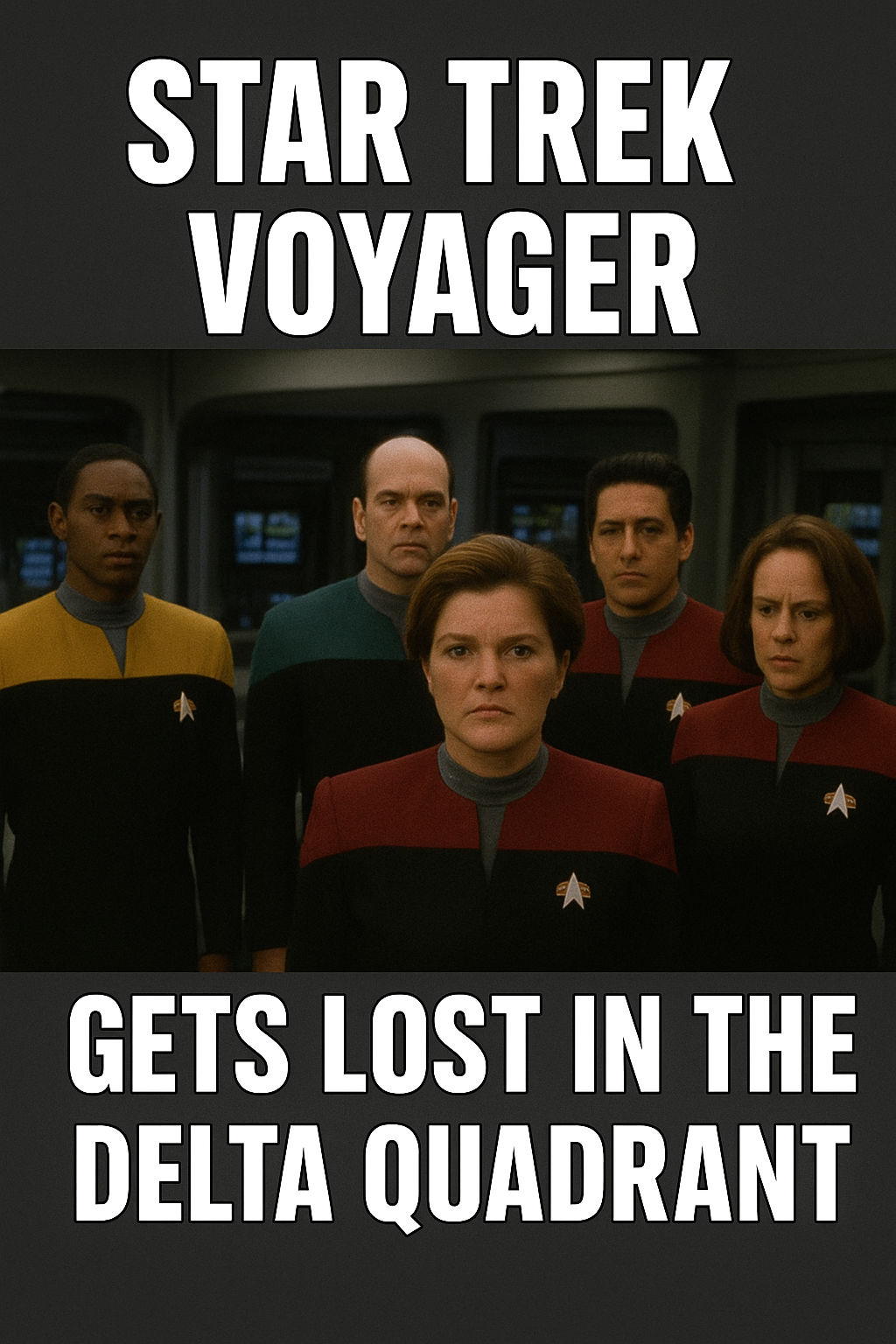 Make a meme image that summarizes the plot of star trek voyager