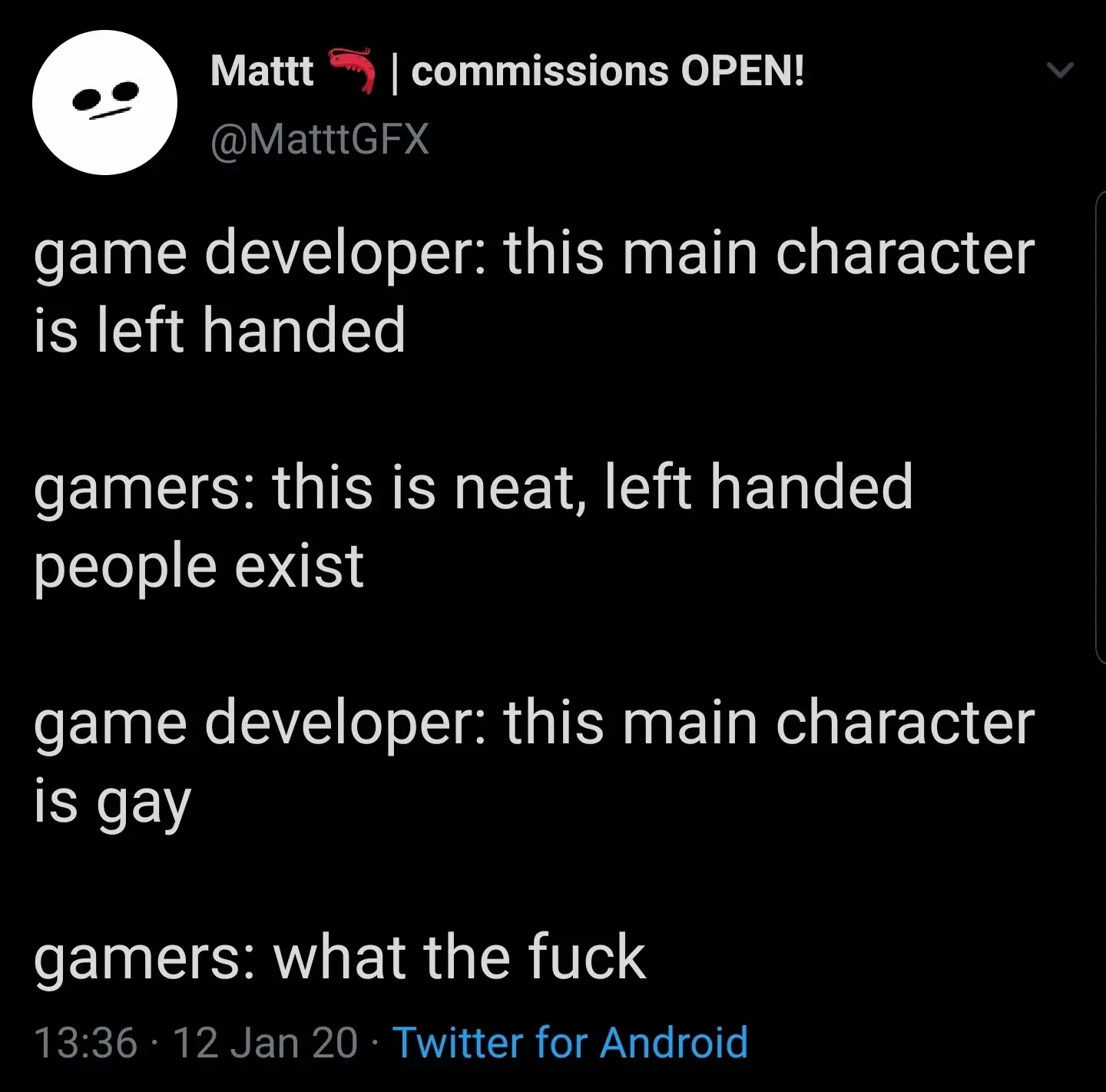 Alright, but I have yet to see a game character that’s left handed though