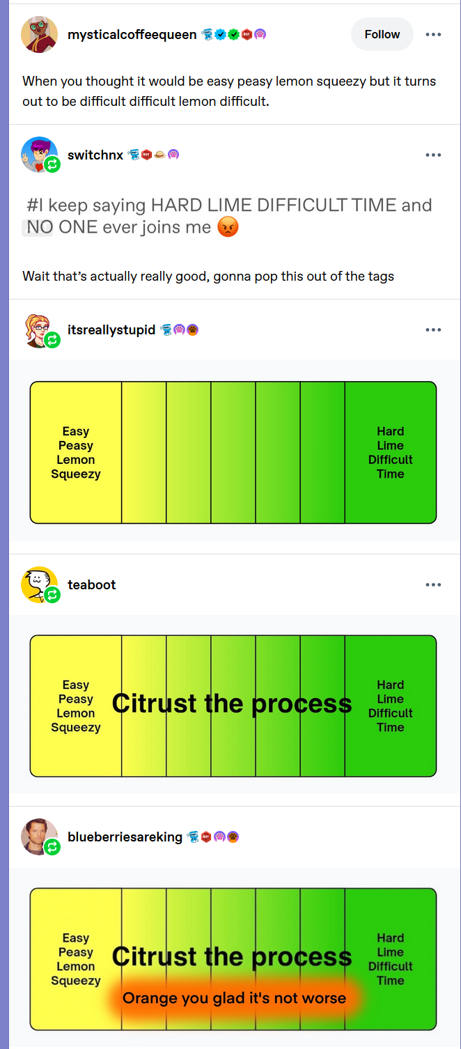 I’ve been feeling more stressed depressed lemon zest lately, myself.
