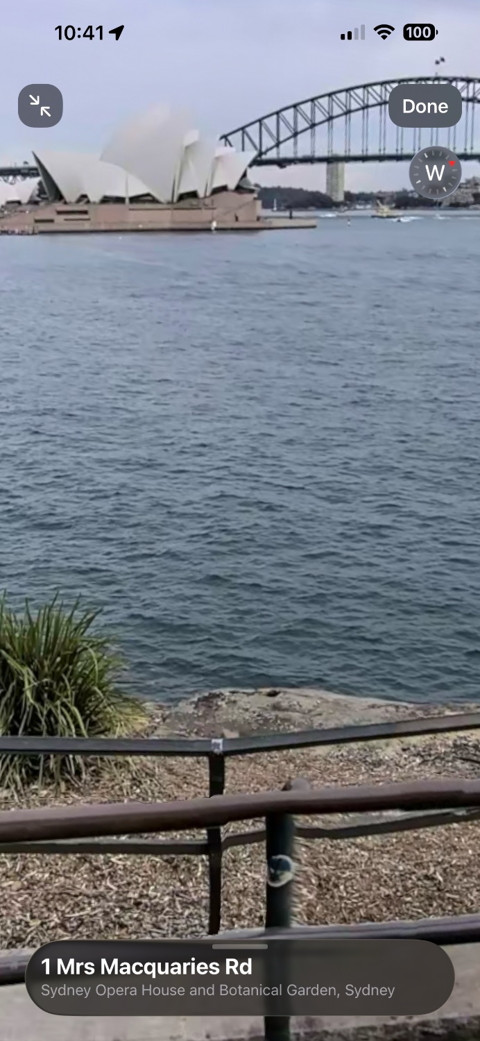 There’s also, in retrospect, the question of where the photo was taken from. The photo shows an angle of the Sydney Opera House and the Sydney Harbour Bridge that I don’t think is possible, especially when you add in that brick footpath and metal railing. It resembles, perhaps, parts of the railing from Circular Quay, which is west of the Opera House, and thus cannot show both Opera House and Bridge in the same photo. The angle appears to be from near Mrs Macquarie’s Chair, but here’s what the view looks like there: