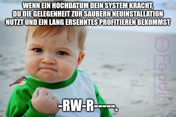 Der Witz war: ich hätte nicht neu installieren müssen, das hätte sich reparieren lassen - letztendlich hatte es lediglich den Zimt gemahlen (um mal beim Wortspiel zu bleiben) - das System war ja noch responsiv und auf RL 3 lief auch noch alles prima, aber irgendwas hat mich da geritten. Und dann muss man sich an dem erfreuen, was man bekommt. Und sei es ein Punkt.