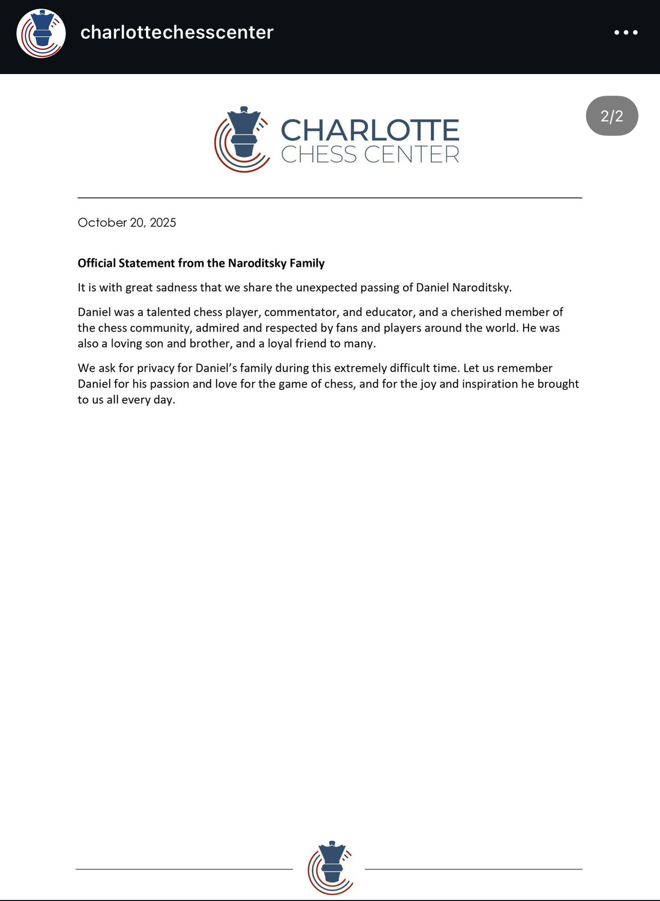 FIDE chief Emil Sutovsky released a reprehensible statement on twitter (which I’m not going to link) where he briefly mentioned Danya and briefly said that Kramnik had behaved badly, and then spent a few paragraphs berating Naroditsky’s friends and family for not supporting him enough, while simultaneously admitting that he wasn’t friends with him and hadn’t spoken to him in 4 years.
