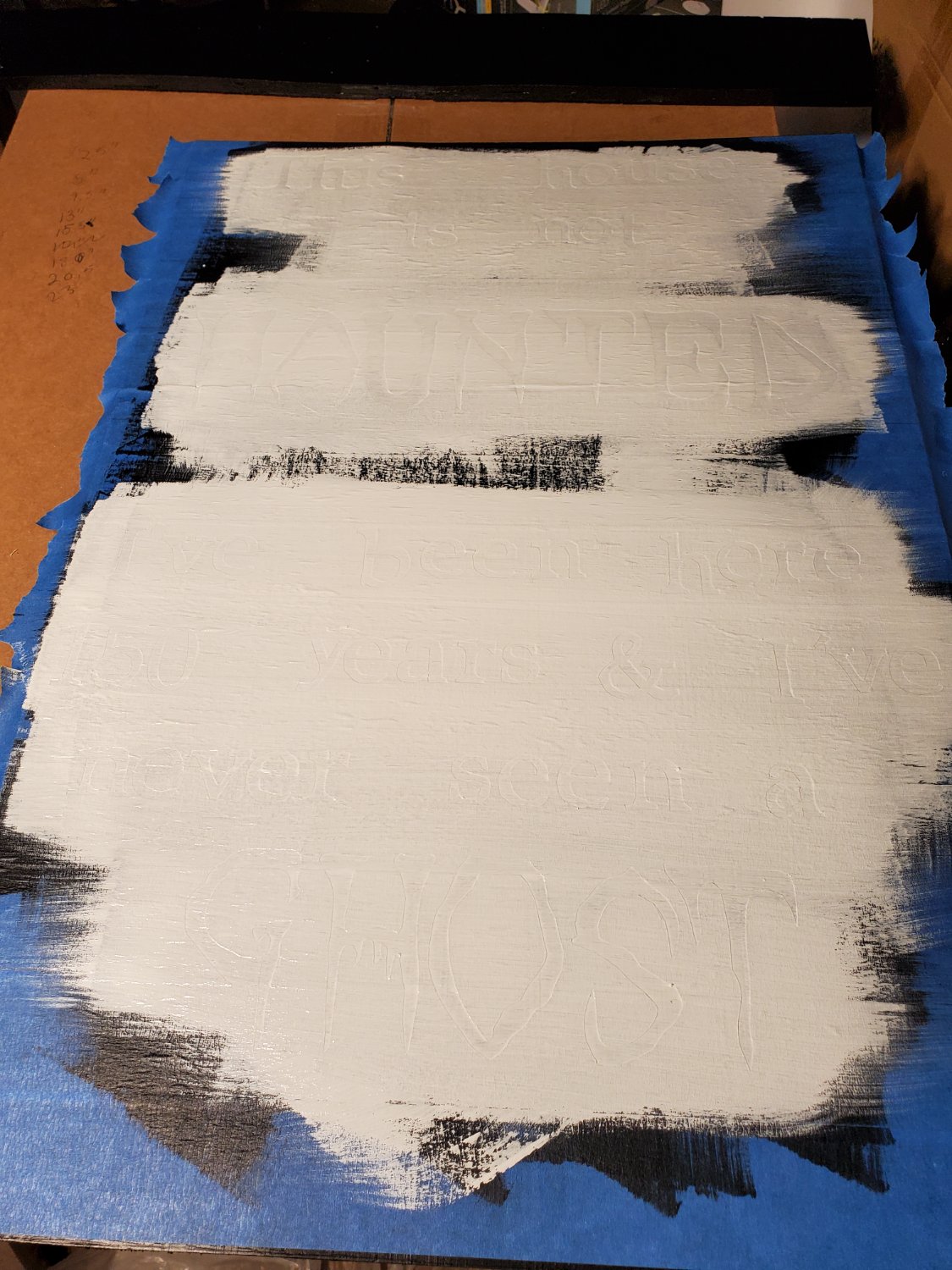 Thanks to my constant idle YouTube scrolling, I’ve learned that you need to paint over the tape with the background color, so I put a coat of black on.