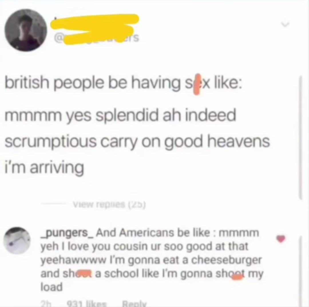 arrow-up1458arrow-down1imageUK vs US sexooli3@sopuli.xyz to Funny@sh.itjust.works · 13 days agomessage-square101linkfedilink