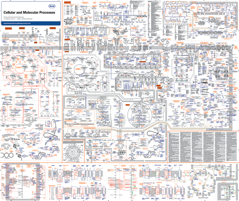 Remember my biochem professor showed that chart at the end of “Biochem 100” We had focused in citric acid cycle, the electron transfer in the mitocondria, basic genetics (amino acids, RNA, DNA), neogluconesis, and something about removing nitrogen from cells +a whole lot more I can’t remember 20 years after the class.