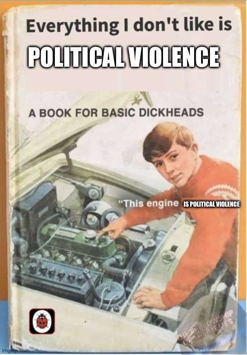 Is this “wave of political violence” in the room with us right now? From what I can tell it’s pretty much a bunch of libs holding up posterboards and complaining about/mocking officials. I don’t think they’ve got the stomach to be violent quite frankly.