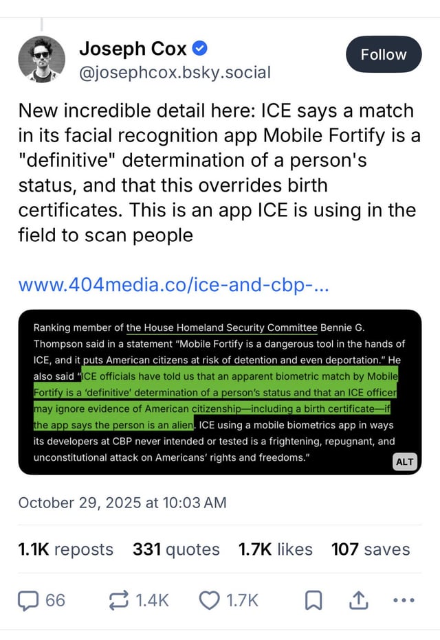 Sunflier@lemmy.world to People Twitter@sh.itjust.worksEnglish · edit-27 days agoThis is an app ICE is using in the field to scan peopleimagemessage-square151linkfedilinkarrow-up11.03Karrow-down16file-text