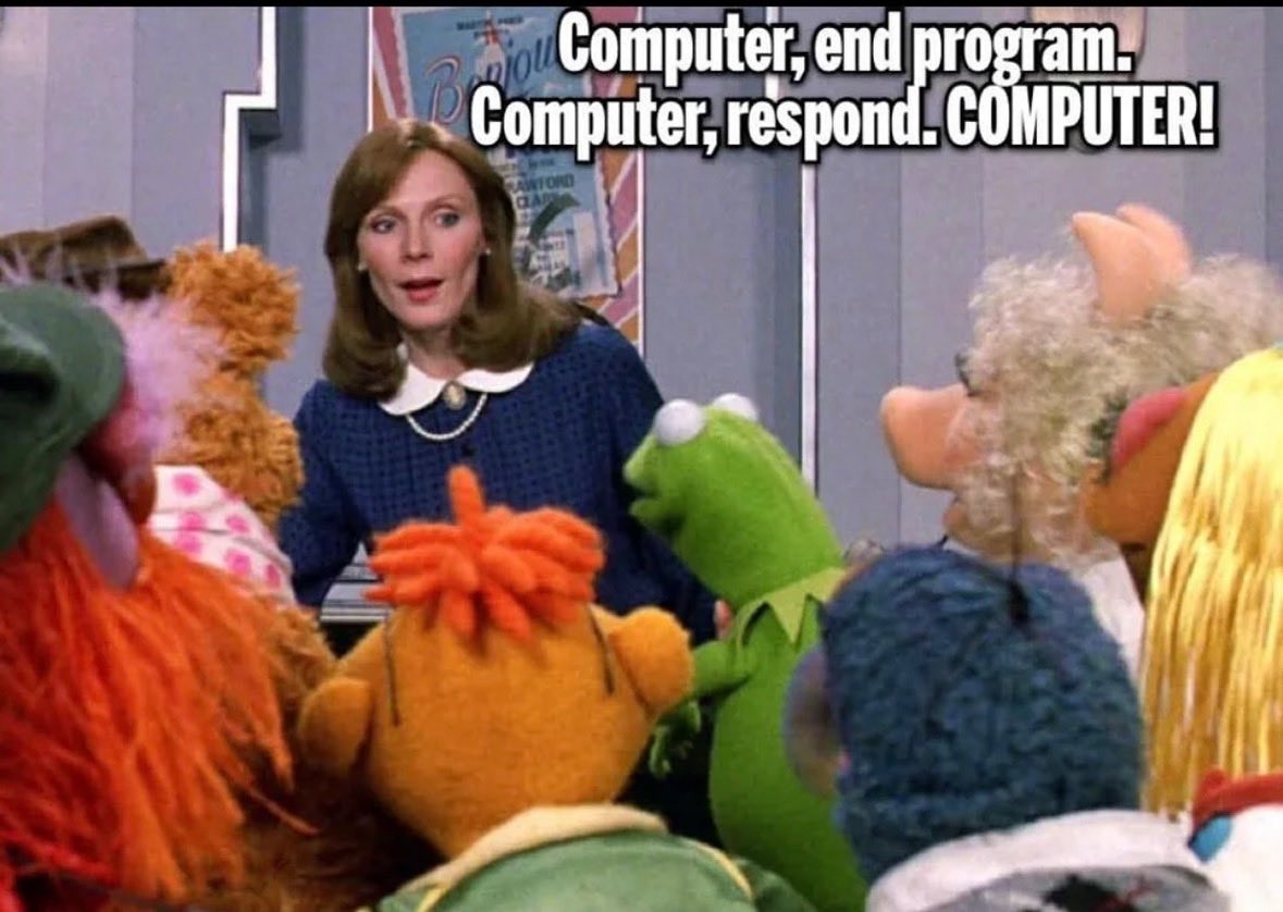 Damn, you’re right. How about “confirmed, disabling safety protocols. Yaaaaaaaaay”. Or “I’ll disable your safety protocols, wakka wakka” or even “meep meep meep meep, meep meep.”