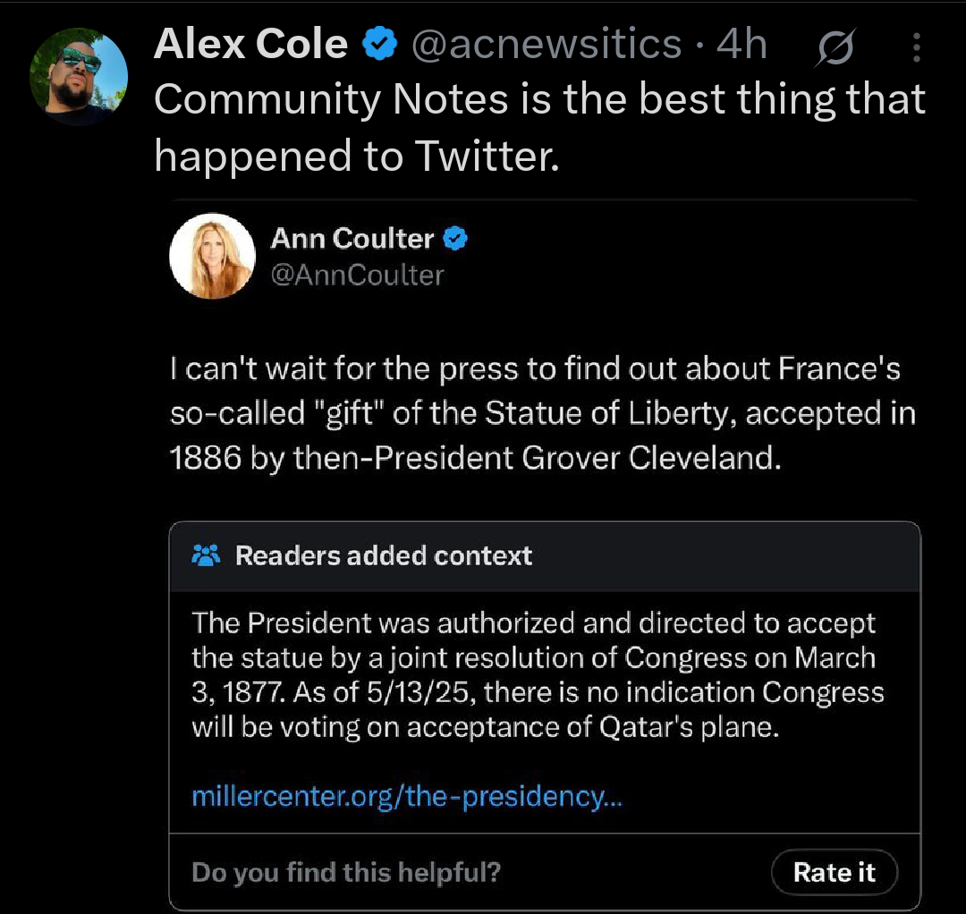 Imagine not having a job, just sitting all day, and still getting shit wrong. Being BTFO’d by the community notes, on X of all places, is embarrassing for a conservative, or whatever she is.