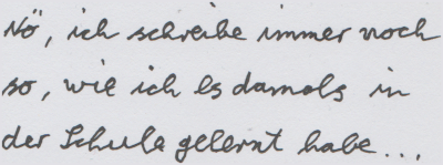 Irgendwann, in späteren Schuljahren als es den Lehrern im wesentlichen egal war welche Schrift verwendet wurde habe ich dann zurück zur Druckschrift gewechselt.