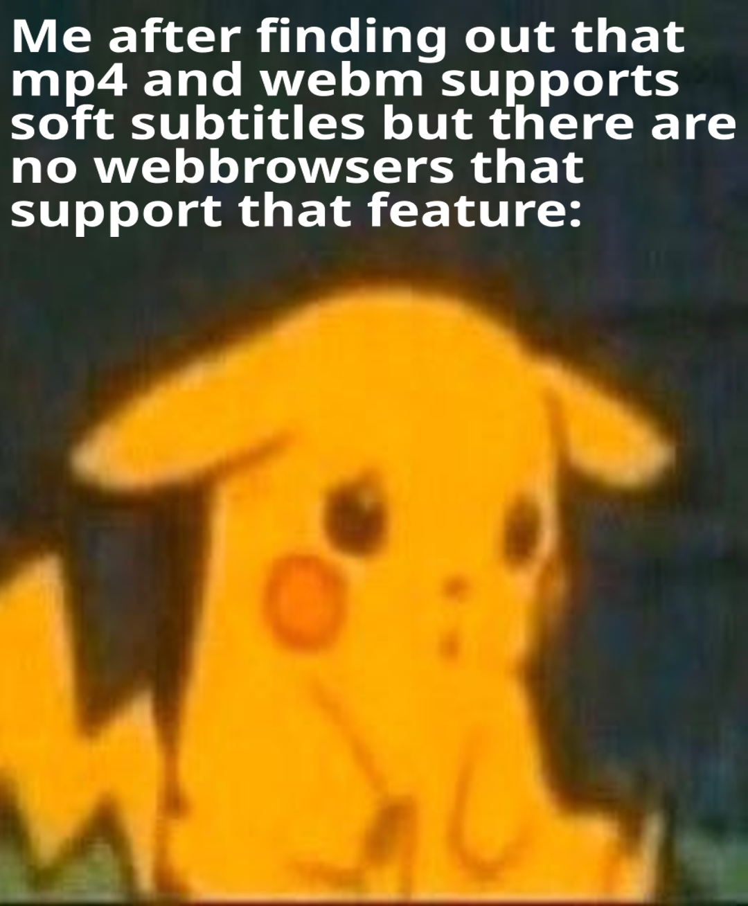 arrow-up1567arrow-down1imageWebm supports multiple audio and subtitle tracks inside its RIFF container structure, why the hell arent browsers supporting it???einfach_orangensaft@sh.itjust.works to Programmer Humor@programming.dev · 6 months agomessage-square44linkfedilink