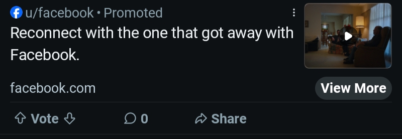 arrow-up1216arrow-down1imageReddit has a Facebook Ad Suggesting that you stalk your exlemmylump@lemmy.world to Reddit@lemmy.world · 18 days agomessage-square23linkfedilinkfile-text