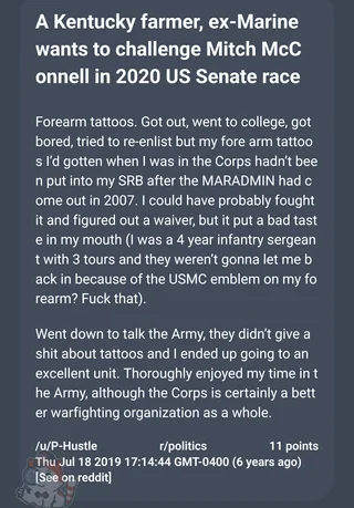 If you know about MARADMIN, can you elaborate on what he means? I looked it up and understand it as a kind of code of conduct, but don’t see what changed in 2007, just that he said a USMC based tattoo was what prevented him.