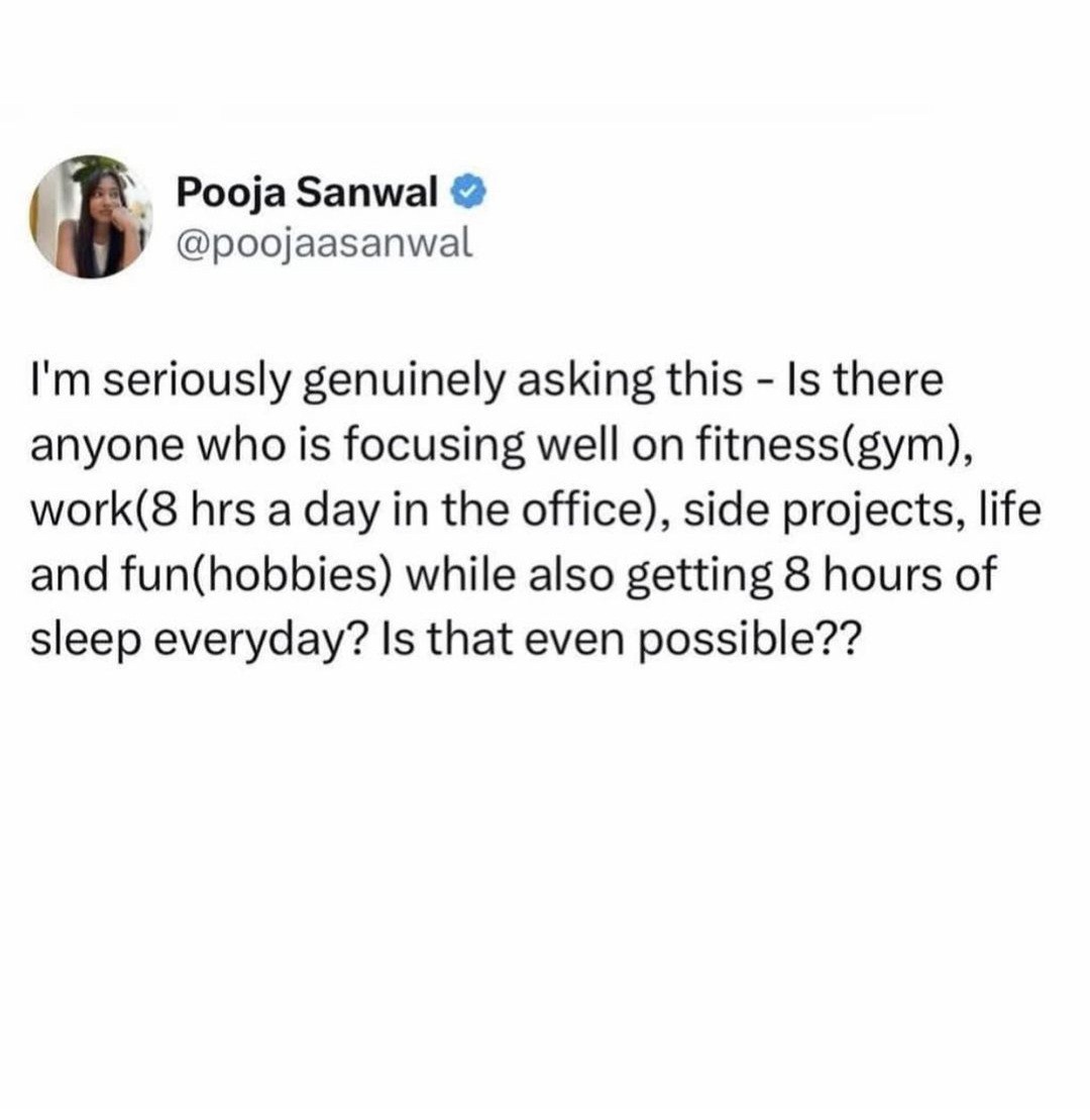 That grindset “I only need x hours” is horseshit, everyone who does this thinks they’re some kind of rare genetic anomaly when in reality they’ve simply gotten used to being sleep-deprived all the time