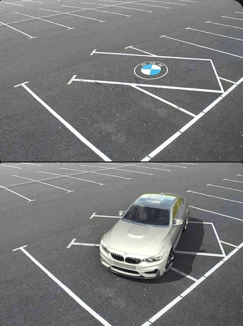 This is fake the bmw isn’t double parked and the truck isn’t parked at a 45°