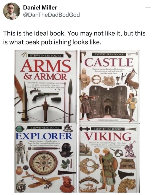 Fuck iPads, having kids look at glossy pieces of paper with diagrams of castles and pictures of cool pirate swords is what the children need.