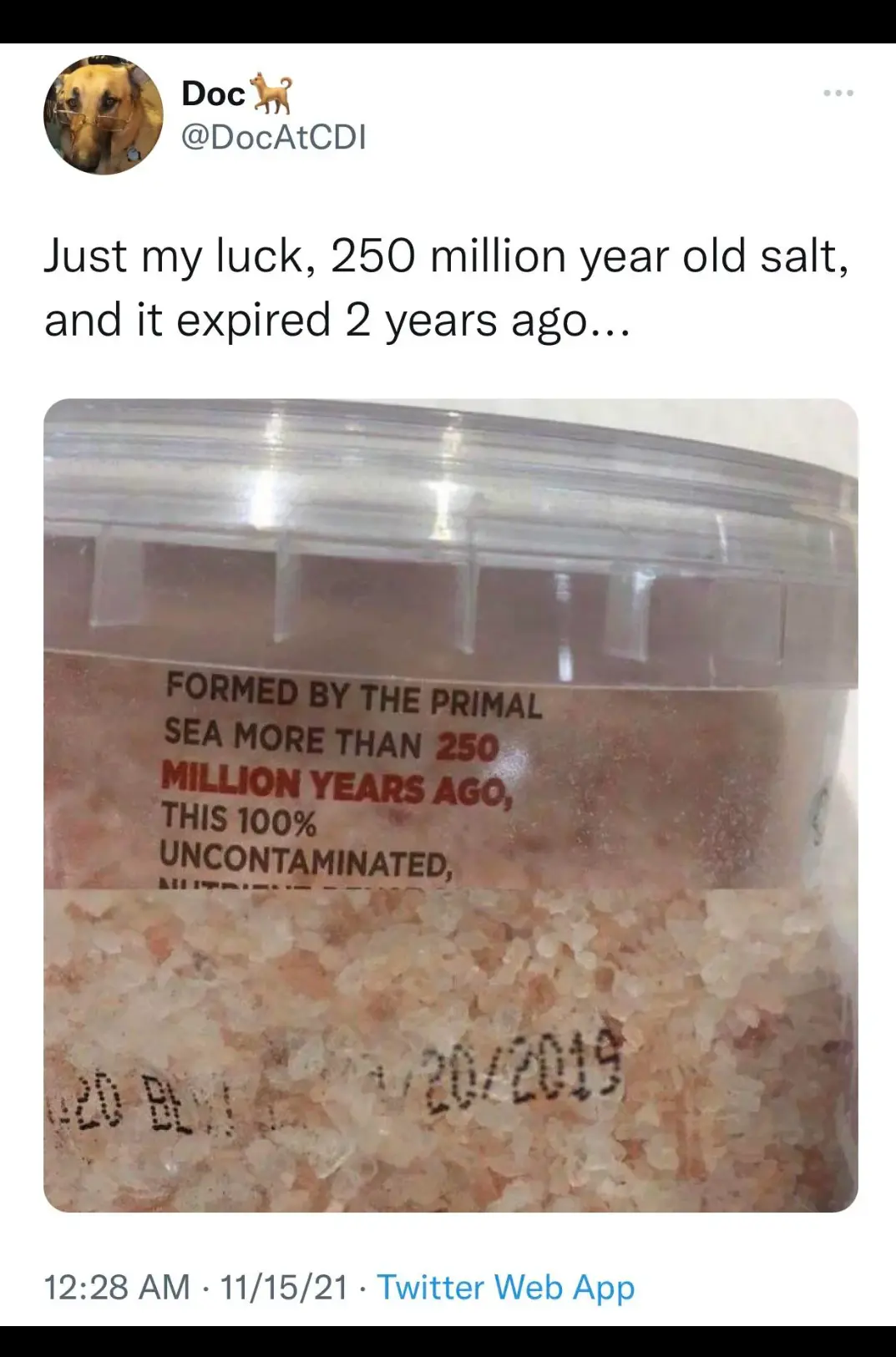 minus-squareOutlierBlue@lemmy.calinkfedilinkEnglisharrow-up178arrow-down2·6 months ago 100% uncontaminated IT’S PINK! It’s definitely contaminated. Maybe it’s got other things things you want in there, but that’s still contamination. It’s not pure salt.