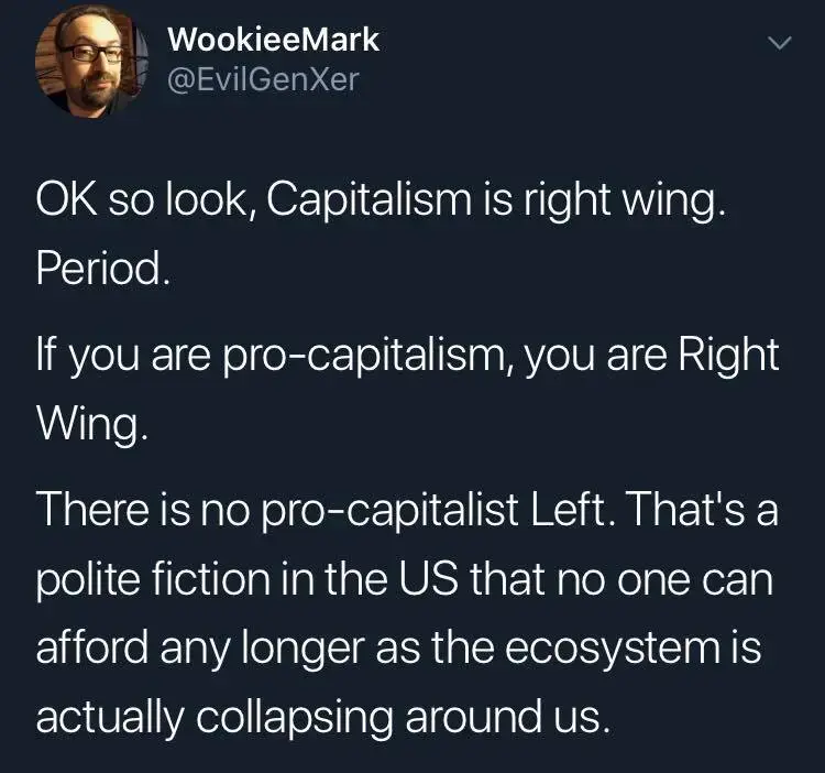 There is no pro-capitalist Left. That’s a polite fiction in the US that no one can afford any longer as the ecosystem is actually collapsing around us."