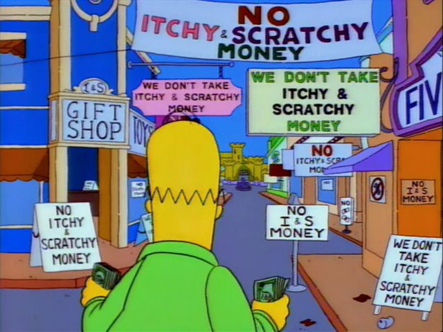 Itchy and Scratchy money: https://www.youtube.com/watch?v=K-6IzkDyl9Q