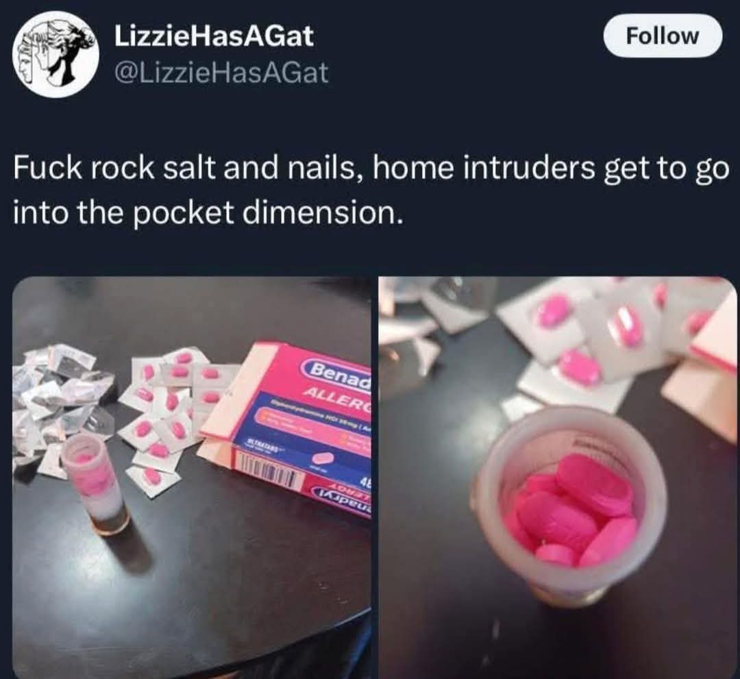 Im not saying you’re wrong about the amount of carrier material, but sudafed(pseudoephedrine) and benadryl(diphenhydramine) are two completely different drugs.