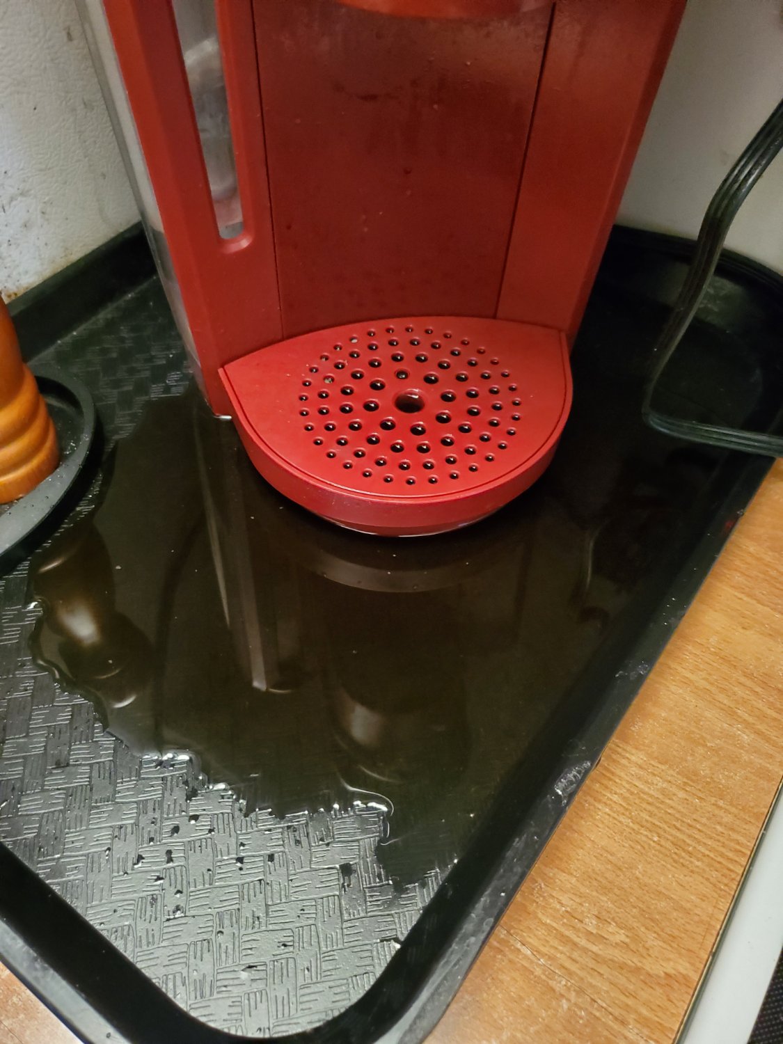 Originally the tray was there because I spill water when I’m refilling it, but it proved helpful in this case as well.